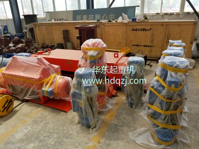 運行減速機、運行電機、快速起升電機、慢速起升電機、慢速起升端蓋、起升減速機、卷筒、卷筒外罩、吊鉤、按鈕開關、聯軸器、接觸器、電源接入線、限位器、起重量限制器、重錘限位器、無線遙控器、有線手柄、導繩器、鋼絲繩。