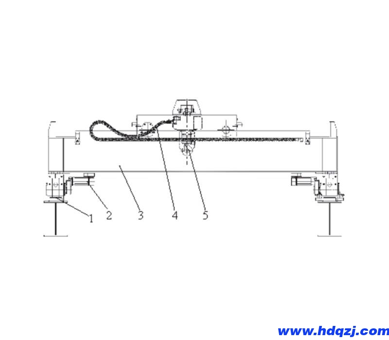 1. 運行軌道 2. 運行機構 3. 鋼結構 4. 供電裝置 5.環鏈電動葫蘆